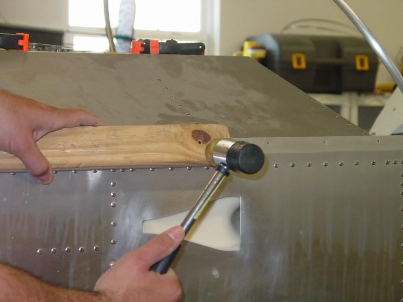 What I did was to use a 12" length of wood and my rubber tipped hammer to bend the flange over. This worked great! The wood spread the bending out over a larger area, and I could run up and down the length of the flange bending it to suit. The edge turned out nice and crisp because the longeron acted like a bending brake underneath.
