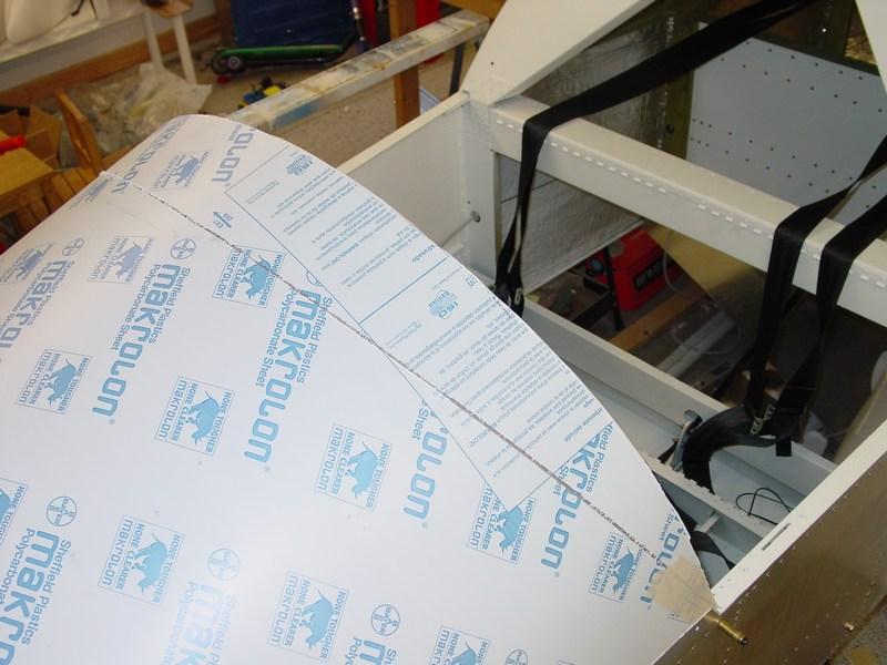 With the bow in place and the skin flange bent, it was time to start fitting the windscreen. The windscreen comes cut slightly oversized and will be trimmed down to size. The bent flanges do a great job holding the windscreen in place while you mark everything.