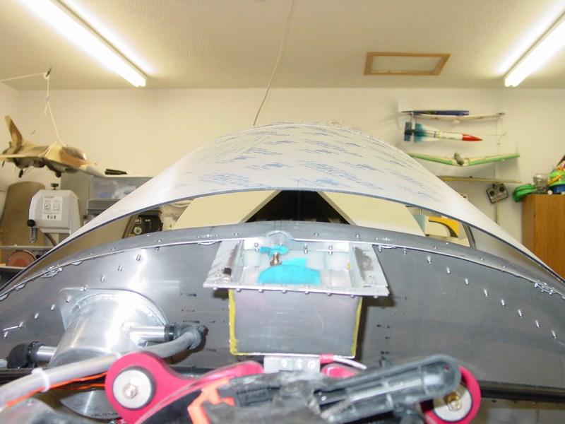 After finishing all the screw holes, I removed everything to prepare for final assembly. The canopy strap and windshield bow were masked off and painted black.