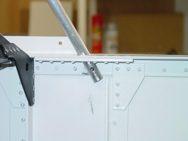 The first step in the canopy installation is to fit the forward windscreen, and that starts with the windscreen bow. The kit now includes a pre-bent bow, made from 1/2" solid 6061T6 rod. The bow comes a bit long, and must be trimmed to fit. The bow leans forward 60 degrees, running through the elongated hole and doubler in the upper fuselage longeron. To get the bow to fit properly, I trimmed 1" off each end.