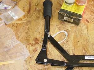 The brake cable link is made from aluminum bar stock. Once this part is finished, the brake handle can be installed.
