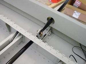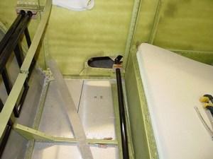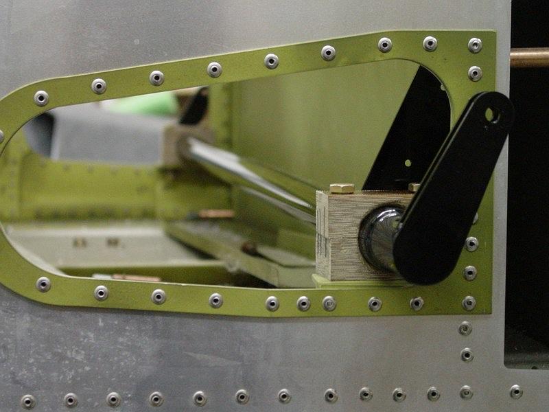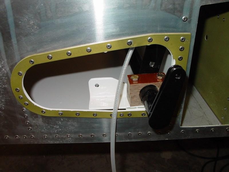 The flap stop bracket and trim lever installed on the sidewall.