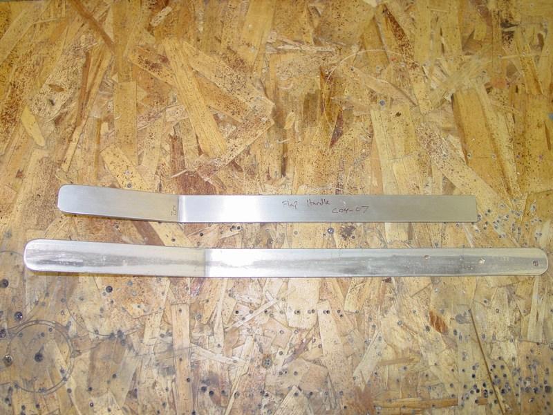 The flap and brake levers are made from 3/16" x 1" aluminum bar. The grip area will be coated with vinyl tool-dip to give it a comfortable, non-slip grip.