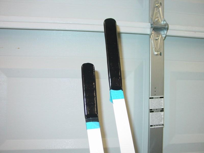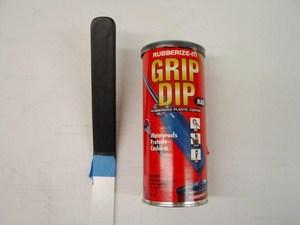 All three handles were first painted with the epoxy white paint, then the tops dipped in "Grip Dip". This stuff was hard to find. Home Depot carries it, but not at all of their stores.