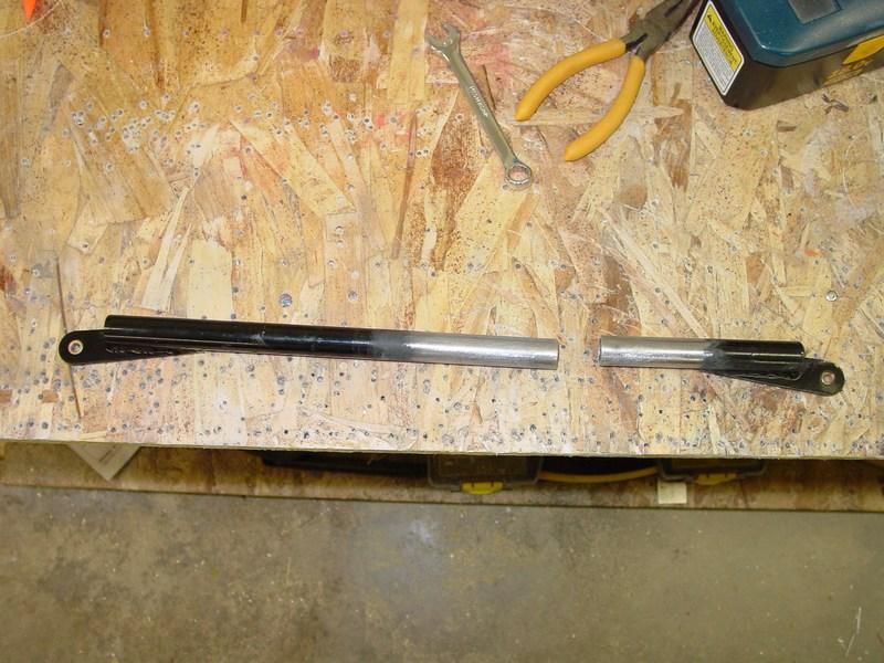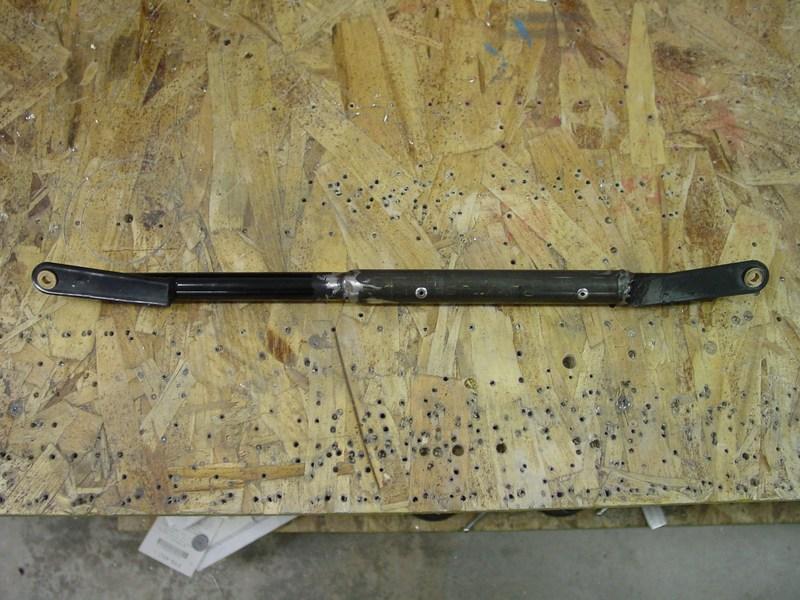 My choices were too live with sticks that were never quite vertical, or to make a new link bar. I chose option three: make the old bar fit! I cut the bar in two and welded a 4130 steel sleeve over the two halves. This added the 1/2" or so that I needed.