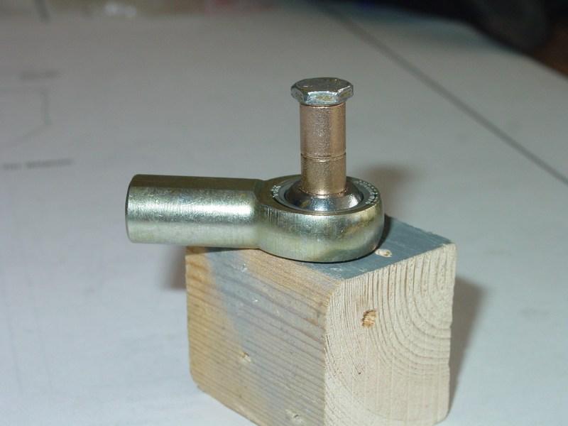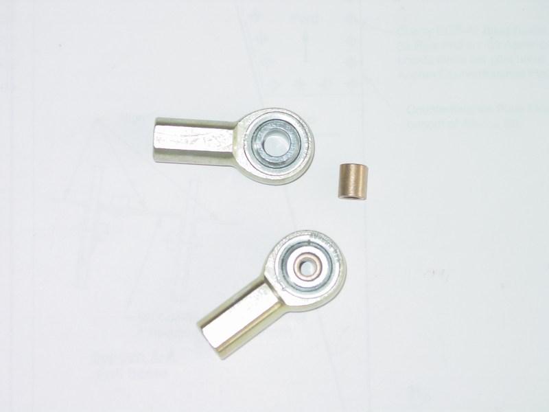 The rod ends are sized for 1/4" diameter bolts, and need to be sleeved down to 3/16" diameter with bronze bushings.