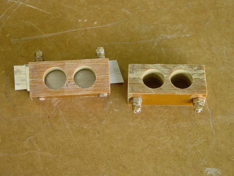 The completed blocks are ready for final chamfering and fitting to the rudder pedal tubes. Total time to construct: 1 hr.