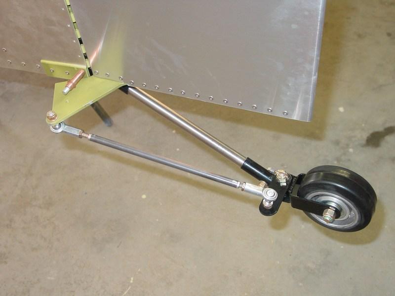 I had heard from other builders the problem whereby the tail wheel pushrod caused the hole in the rudder drive plate to elongate, and become sloppy. The kit included a nice powder coated steel pushrod, but I decided to discard it and make my own. This way I could use a ball end bolted securely to the drive plate, thereby eliminating elongation of the hole.