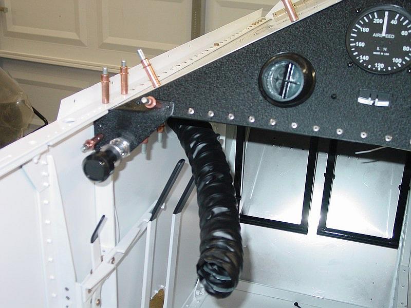 The mixture cable will be positioned just to the left of the throttle. I fabricated a bracket that attaches the instrument panel cross tie.