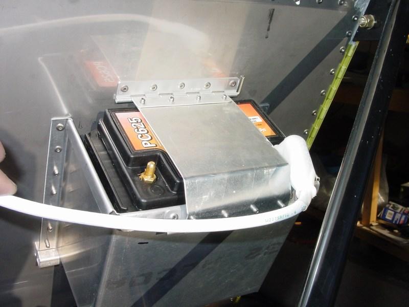 The Odyssey 625 battery in the battery box. The plans dimensions were accurate for this battery, with just a bit of wiggle room.