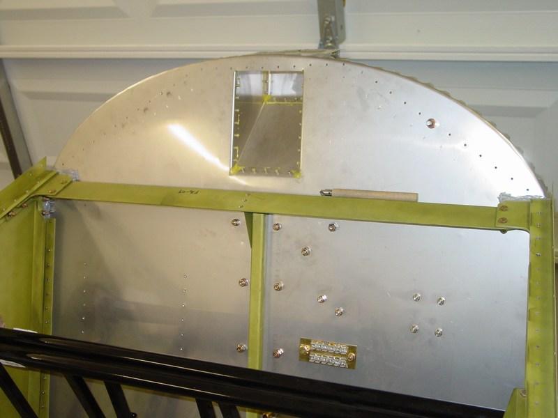 The box is riveted up and the top strap installed. Ideally, this should have been done before installing the fuel tank to make riveting easier.