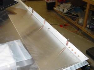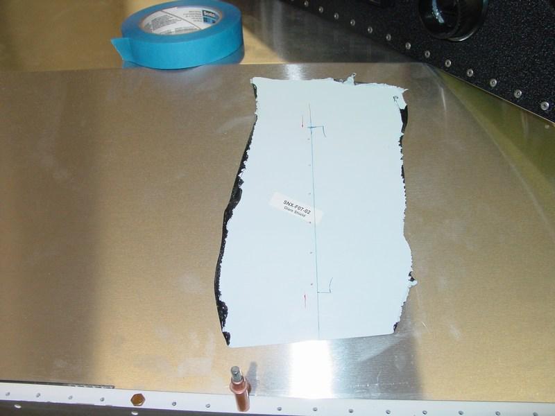 I was worried that the tank stops wouldn't be in the right place, so I didn't drill the holes for them. The tank stop angles did have pilot holes in them, however. In retrospect, the pilot holes should have been left off and just drilled from the top side through both the glareshield and the tank stops.