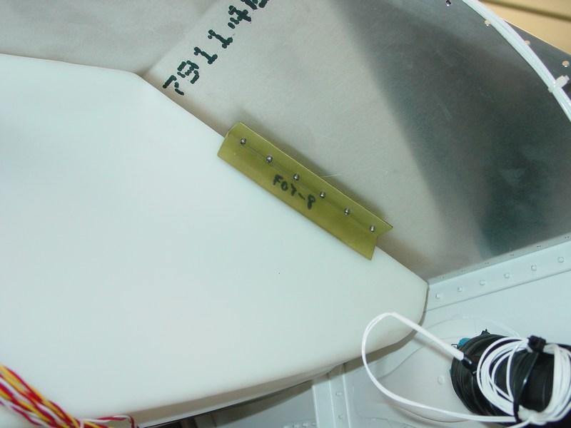 Here you can see the underside of the tank. The tank straps are in the groves nicely. The Sonex capacitance fuel probe in place, and a smattering of wiring has been run inside. (I'll clean this up later on...)