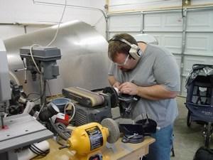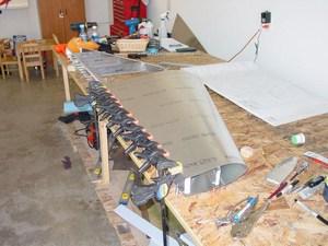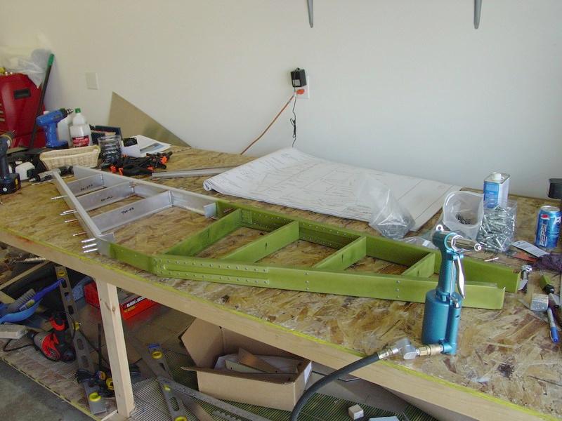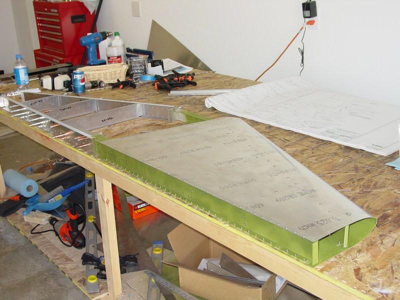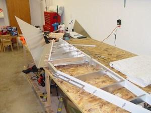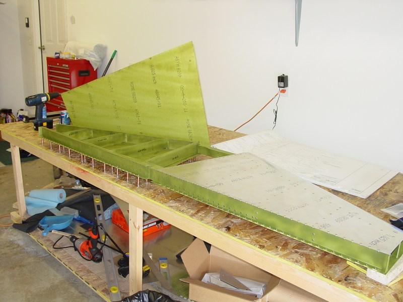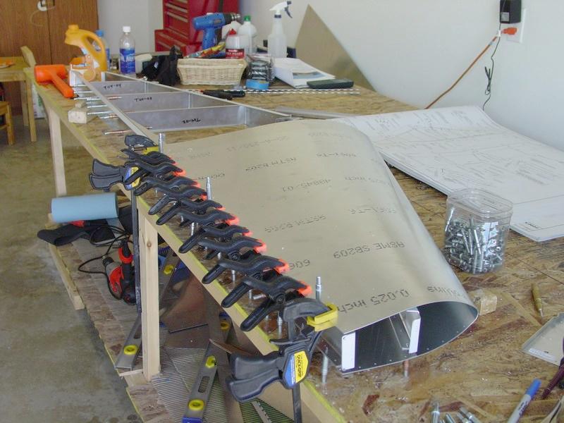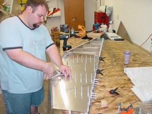 My brother came to visit over Memorial Day weekend, and helped me on the horizontal stabilizer. Together, we assembled the spars (the extrusions were completed several months earlier), fabricated the ribs and clips, and fitted the skin on the left side. All this in only a few hours of work! It really went fairly quickly.