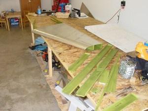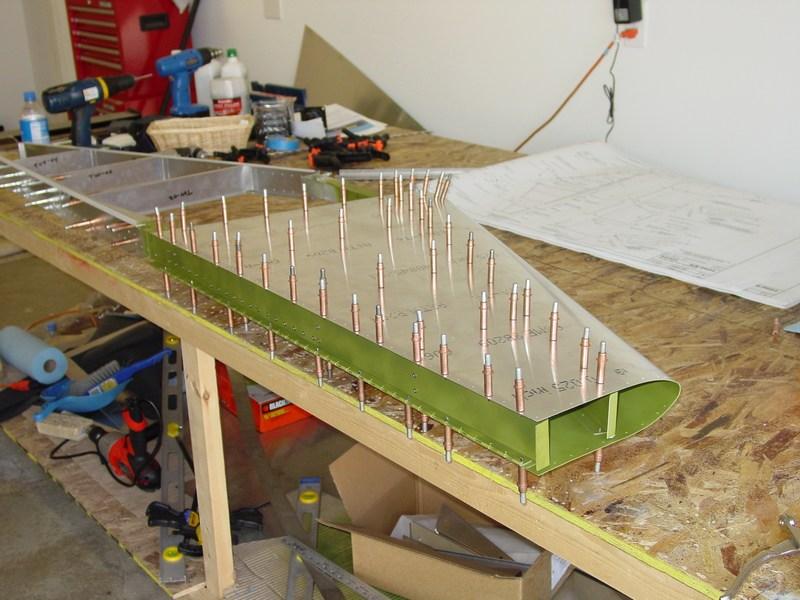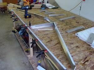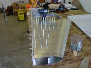 There is not much to tell in building the horizontal stab. Things went together well, and I had no major problems. The hardest part is simply getting the ribs fabricated accurately from channel stock. The critical item here is the overall length. If that is correct, they will fit and line up with the pre-punched holes in the stab skins. Mine were very close, and most of the rivets were right down the center of the rib flanges.