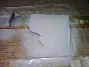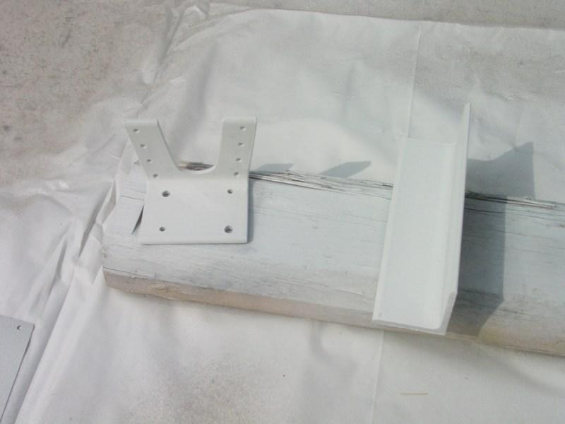 I decided to go ahead and spray the baggage compartment sections and a few test angle pieces. The angles were good practice for the cockpit area (there's lots of angles up there). One was merely sanded and scuffed (from the scrap bin) and the other had been previously primed with zinc oxide. There was no noticable difference in the way the paint went on the two angles, and coverage was good.