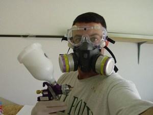The second coat was sprayed 15 minutes later, and looked good. The paint is a 2-part epoxy, and while it is catalyzing it get a bit rubbery. It is important to leave it alone during this stage (I know....).