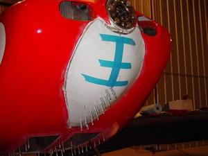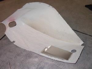 The first step in converting the cowl was to remove the offending section of fiberglass that interfered with the oil sump.