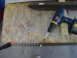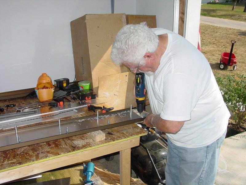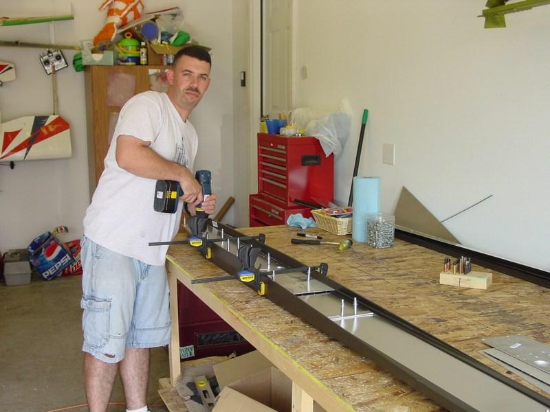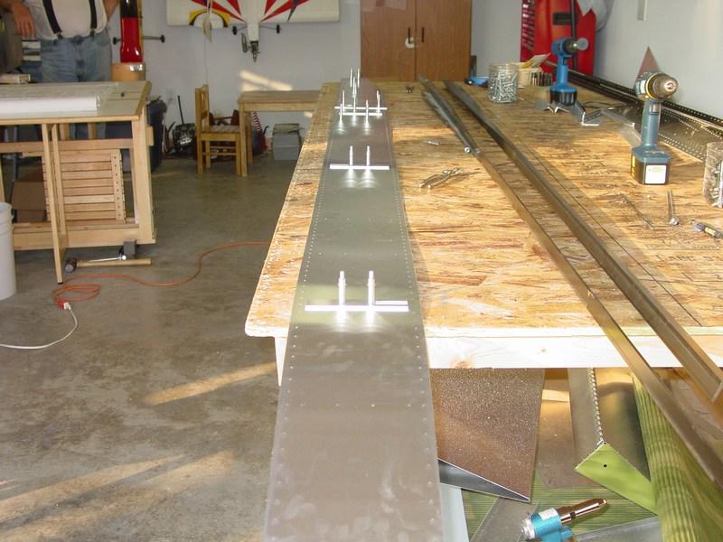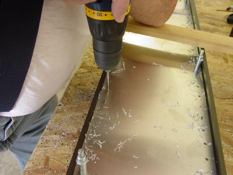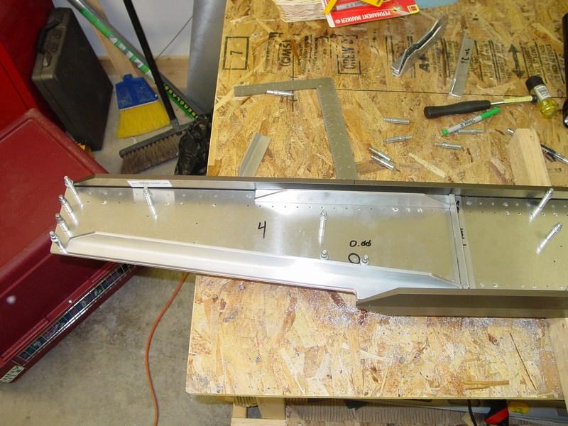 The web is first drilled to the caps with a #40 bit (like everything else), and later will be opened up to #21 diameter for solid rivets.