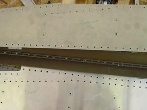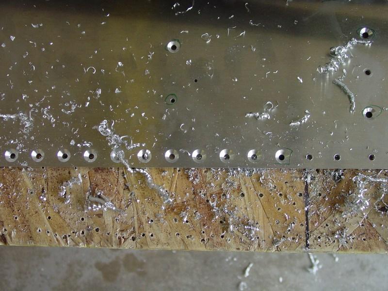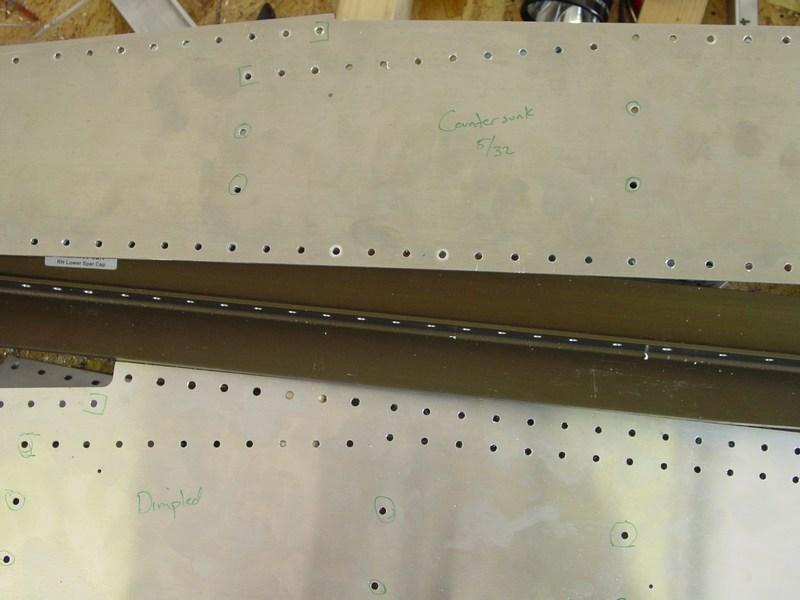 The root end of the lower cap gets a few holes countersunk into the spar cap itself. This will allow the two spars to mate together without hanging up on rivet heads.