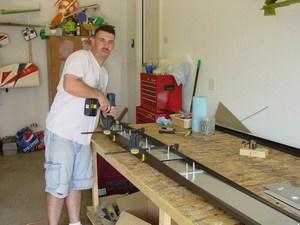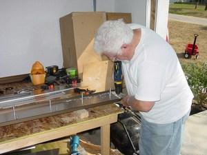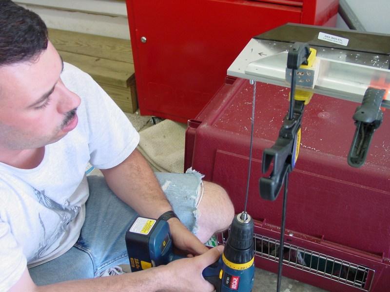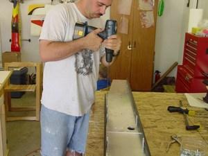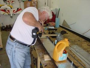 Another shot of drilling the web to the caps. A 12" drill bit helps avoid dinging the spar cap flanges.