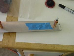 Then, the caps are simply pushed together so they are in contact with the alignment spacer. This sets the distance perfectly, and makes drilling the spar caps quick and easy.