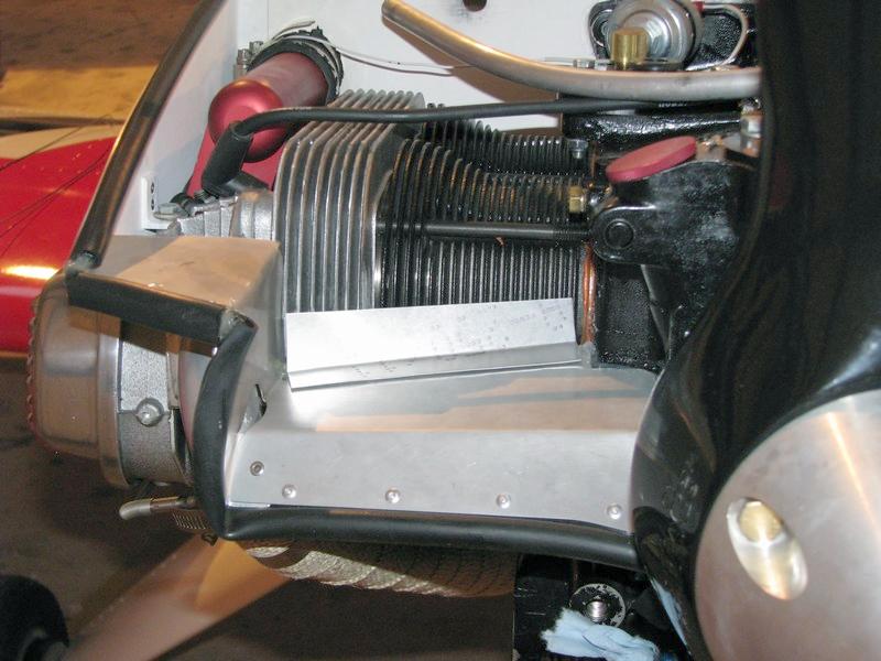 Flight test data indicated the front cylinders were running significantly cooler (40-50 degrees) than the rear cylinders. EGTs follow suit with the CHTs, and the engine was running rougher than it could/should due to the uneven power output. To even out the cooling, air deflectors were fabricated to divert a portion of the incoming cooling air away from the front cylinders and to the rear cylinders.