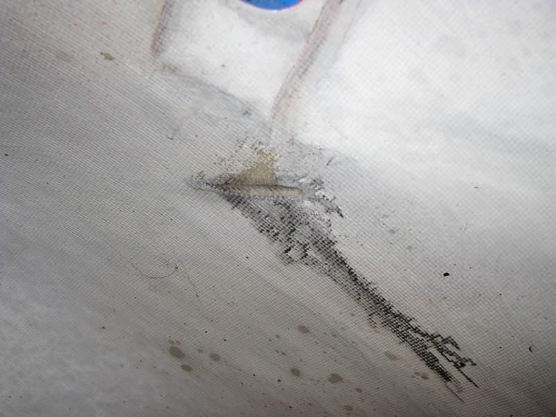 I damaged the right wheel pant in a particularly nasty crosswind landing. The wind was really blowing, and the crosswind capability of the Sonex was definitely put to the test. The landing turned out OK, but the side load on the wheel flexed the tire enough to grab onto the inside of the wheel pant. The moveement of the pant hogged out the outside attachment screw hole until a gapping hole was left!