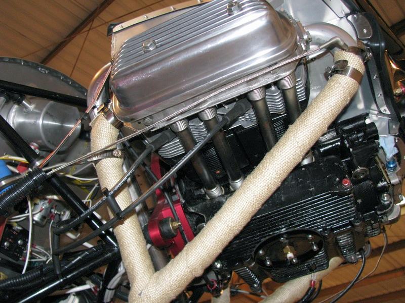 The exhaust system was ceramic coated by Performance Coatings Plus in Joplin, Missouri. This reportedly sends more heat out the tailpie and less into the engine compartment. To further enhanse this goal, the pipes were wrapped in fiberglass exhaust wrap. More heat out the tailpipe theoretically equates to more power, and should help reduce the temperature in the lower cowling, thereby improving cooling.