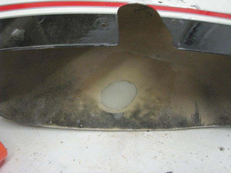 Again, additional fiberglass and epoxy repaired the damage. The nasty part will be repainting the wheel pant :-(