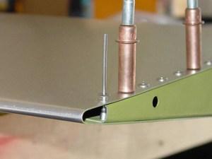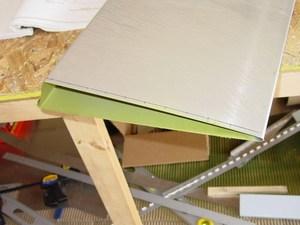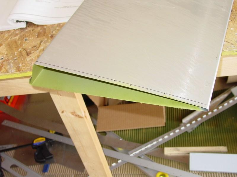 Because the skin is a triangular section, it was not really feasible to prime the entire inside. Instead, I just sprayed the top and bottom inside edges so that the rib flanges were not touching bare metal.