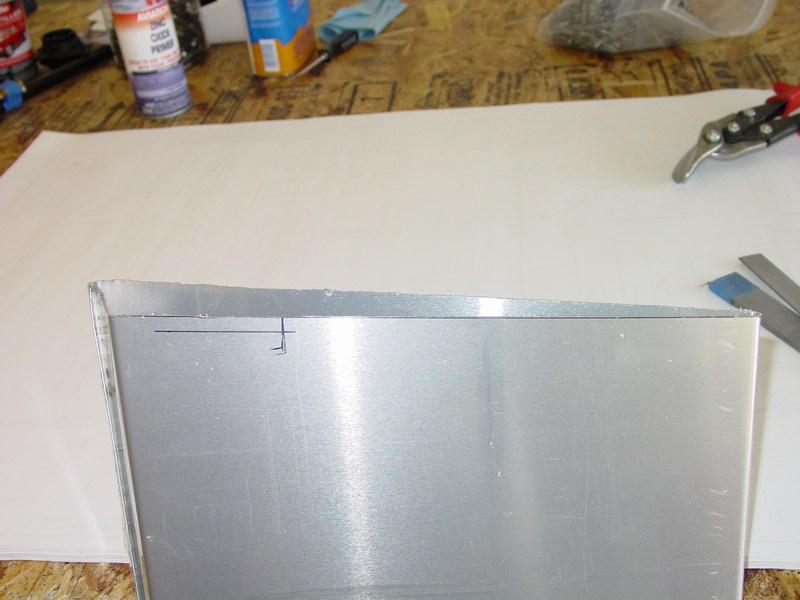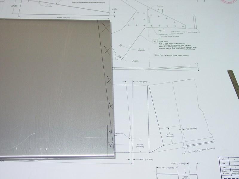 The rudder skin is made from a pre-bent section. I transferred the dimensions onto the skin for the tapered bottom edge and clearance cuts for the rudder drive plate.