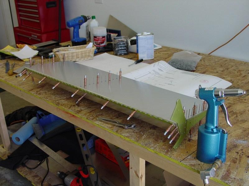 The rudder components are re-assembled and are ready to rivet.