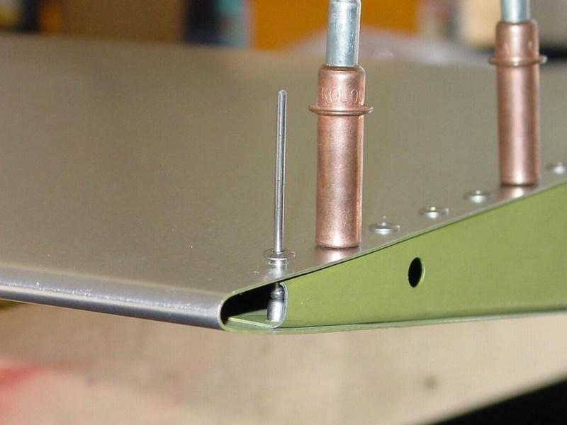 The rivets in the end of the rudder had a bit of interference. After the first rivet was set, the second one didn't sit flush. To solve this, I used my hand puller to partially set the rivet, which in turn caused it to shorten enough to push it all the way in. After it was sitting flush, the rivet was pulled the rest of the way and completed without further trouble.